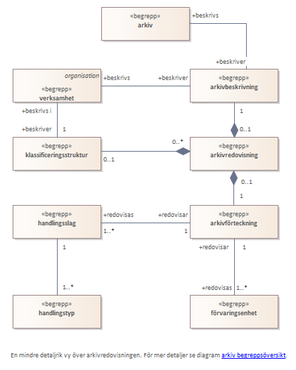 Diagrammet visar en mindre detaljrik vy över arkivredovisningen. För mer information se diagram <a href="javascript:top.guidLink('{58CF8E4B-DD76-48c5-8493-59888FA3EFAC}')"><font color="#0000ff"><u>arkiv begreppsöversikt</u></font></a>.<br/>