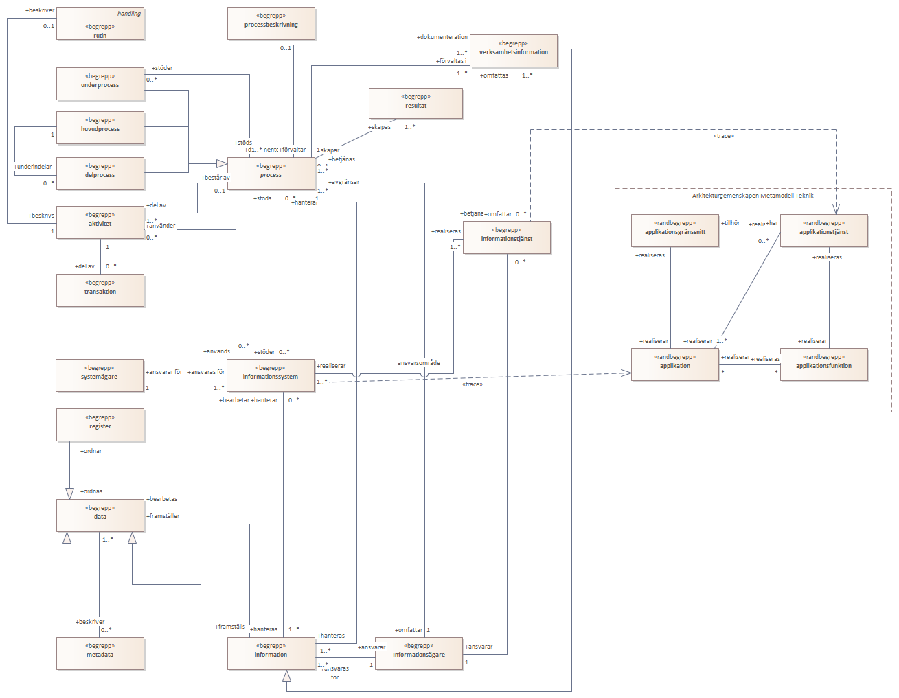 Diagrammaet visar begrepp som funnits särskilt intressanta för informationsarkitekturen. <br/><br/>