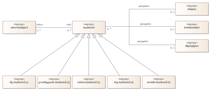 Diagrammet beskriver begrepp närmast relaterade till begreppet skyddsnivå.<br/><br/>