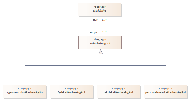 Diagrammet beskriver begrepp närmast relaterade till begreppet säkerhetsåtgärd.<br/><br/>