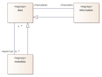 Diagrammet beskriver begrepp närmast relaterade till begreppet data.<br/><br/>