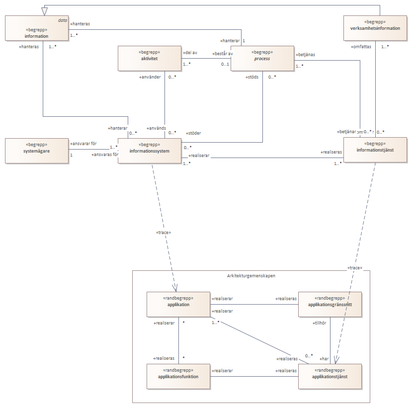 Diagrammet beskriver begrepp närmast relaterade till begreppet informationssystem.<br/><br/>
