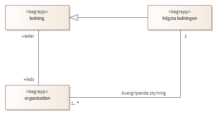 Diagrammet beskriver begrepp närmast relaterade till begreppet ledning.<br/>