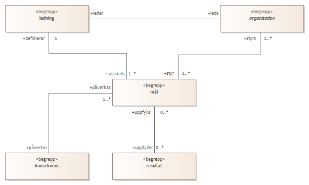 Diagrammet beskriver begrepp närmast relaterade till begreppet mål.<br/><br/>